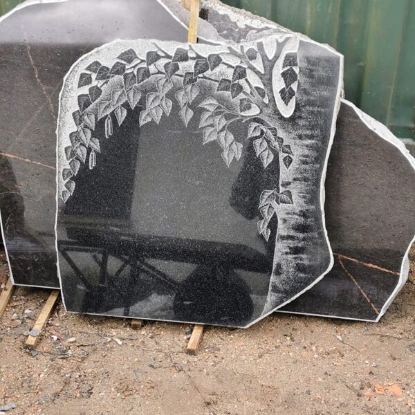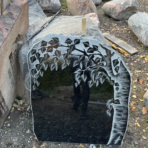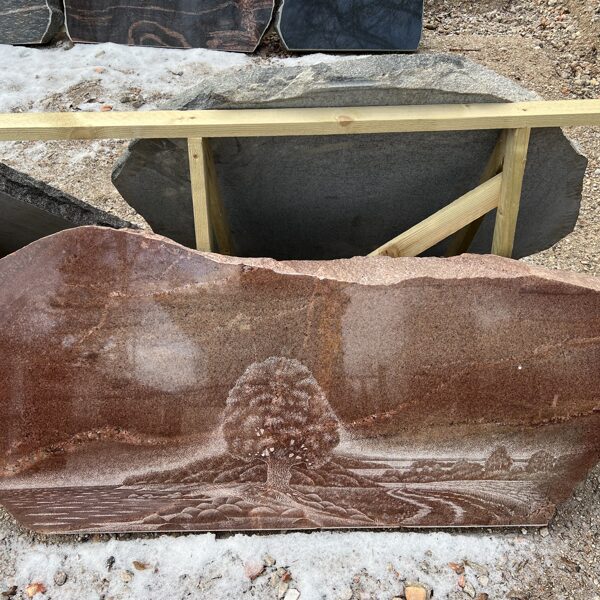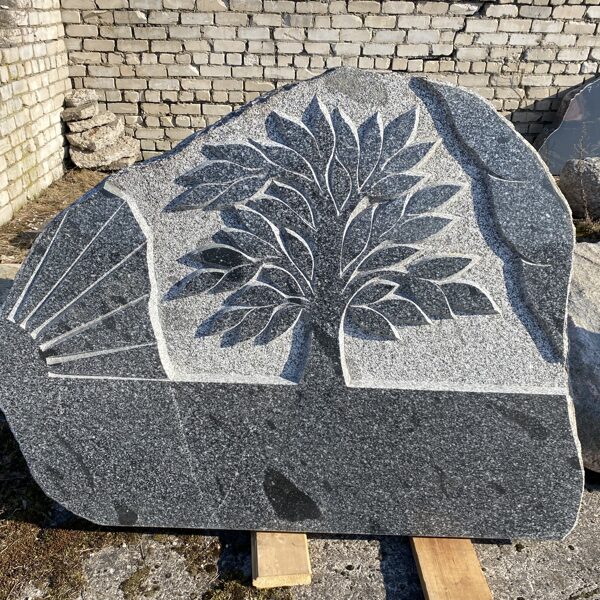56. Granīta piemineklis ar koku un jūras ainu