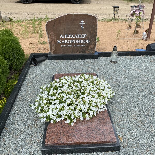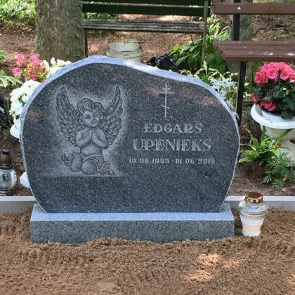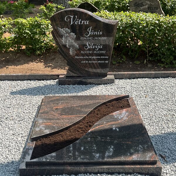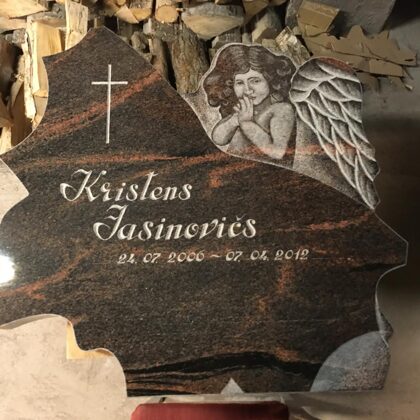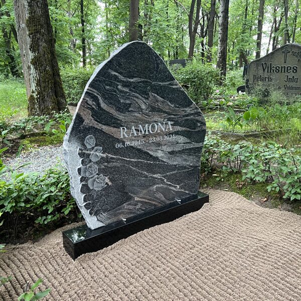 7. Granīta piemineklis ar rožu gravējumu